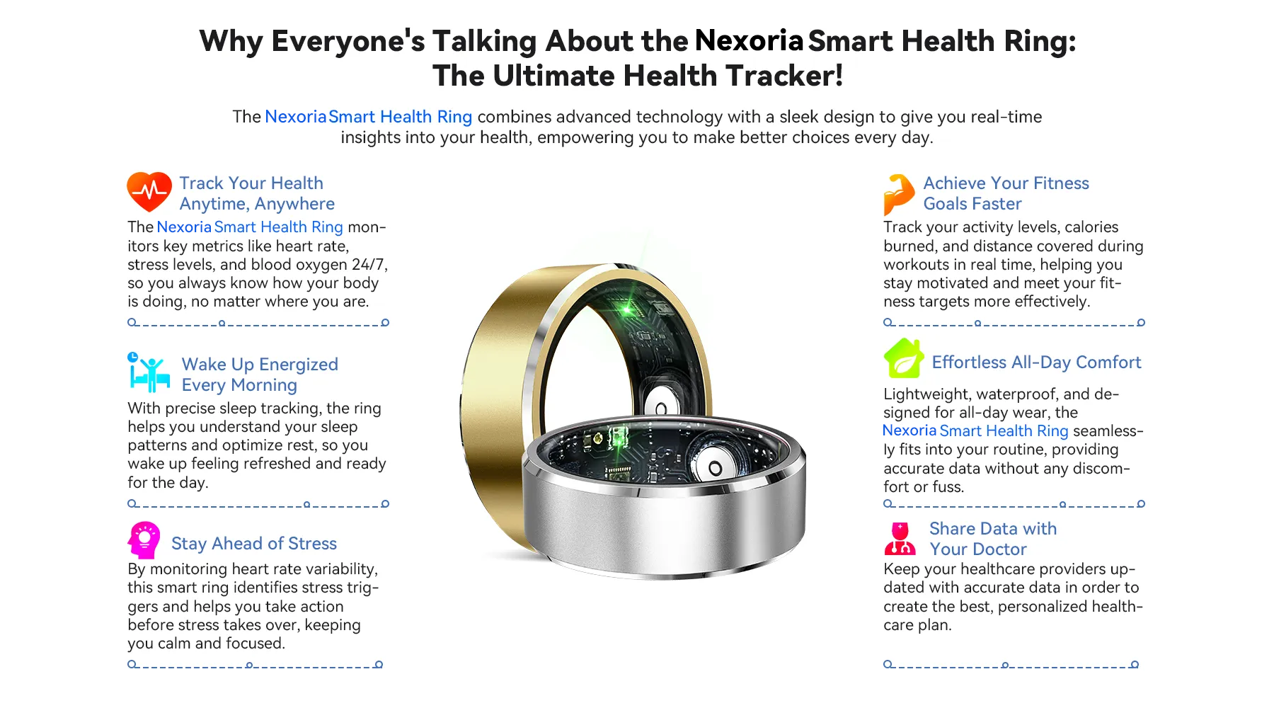 Nexoria Smart Ring: All-weather health monitoring, professional sports assistant, life-efficient housekeeper, the perfect combination of fashion and technology.